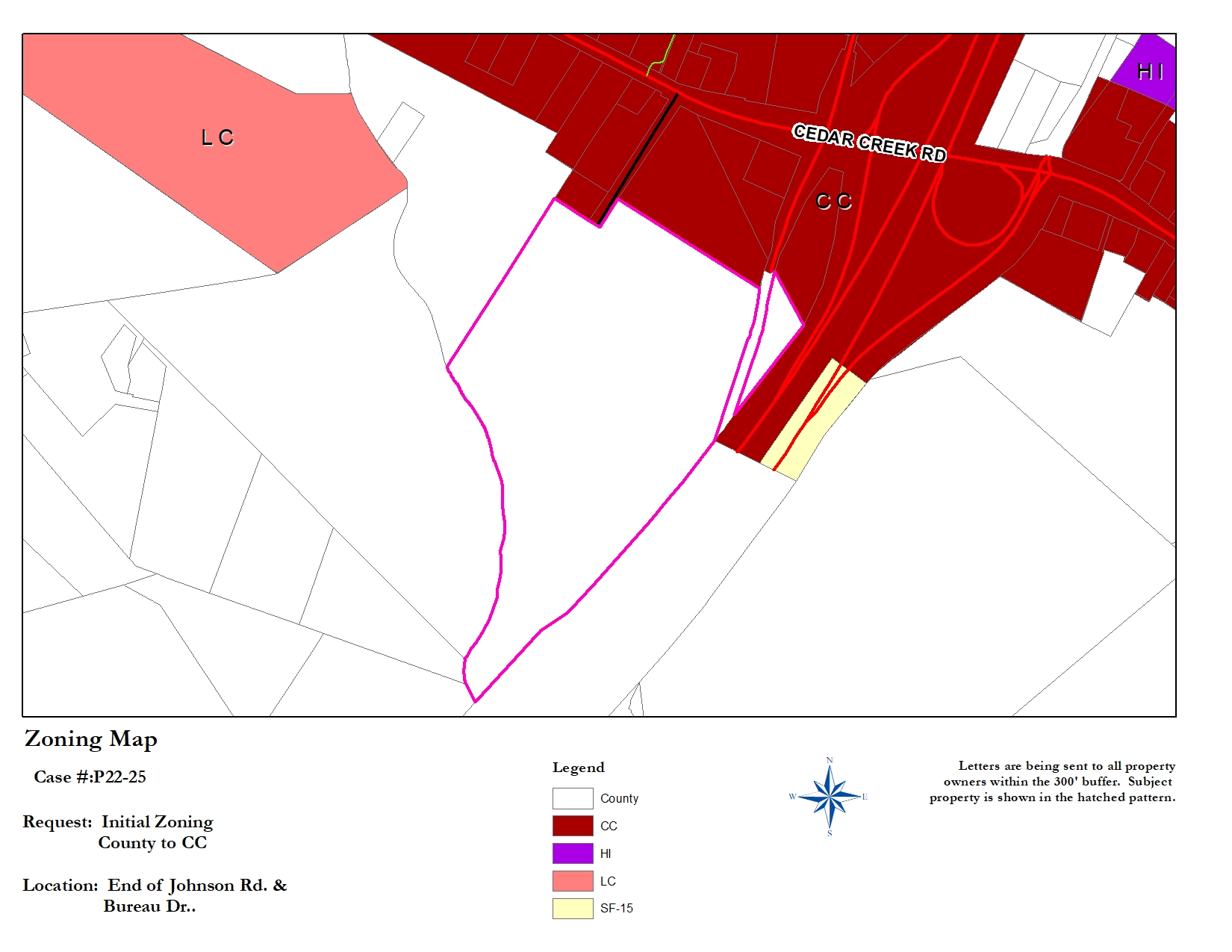 P22-25. Initial zoning to Community Commercial Zoning (CC), for apartments and multi-use recreation facility, located end of Jim Johnson Road (REID #0455166197000), containing 69.94 acres ± and being the property of Charles Graham Johnson, represented by Del Crawford of Crawford Design Company.