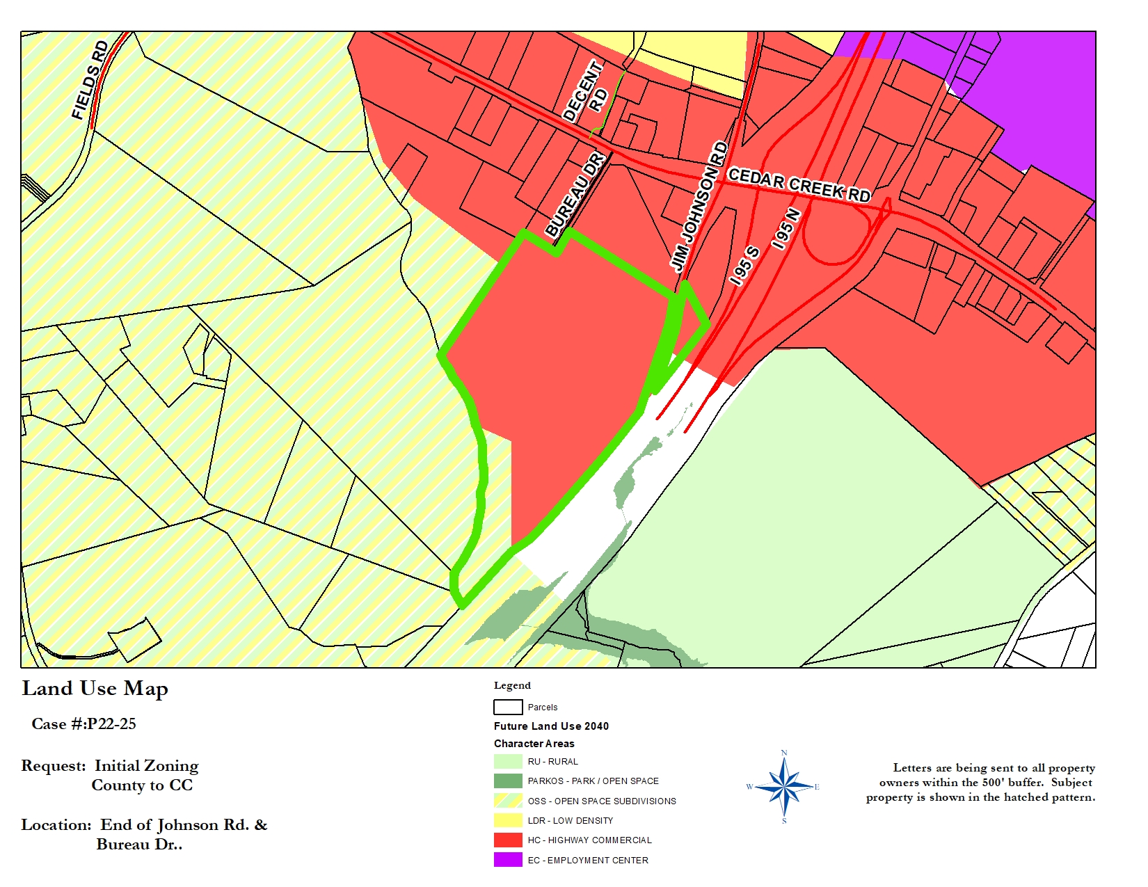 According to Future Land Use Map & Plan, this area is recommended to be developed as Highway Commercial (HC) and Open Space Subdivisions (OSS)