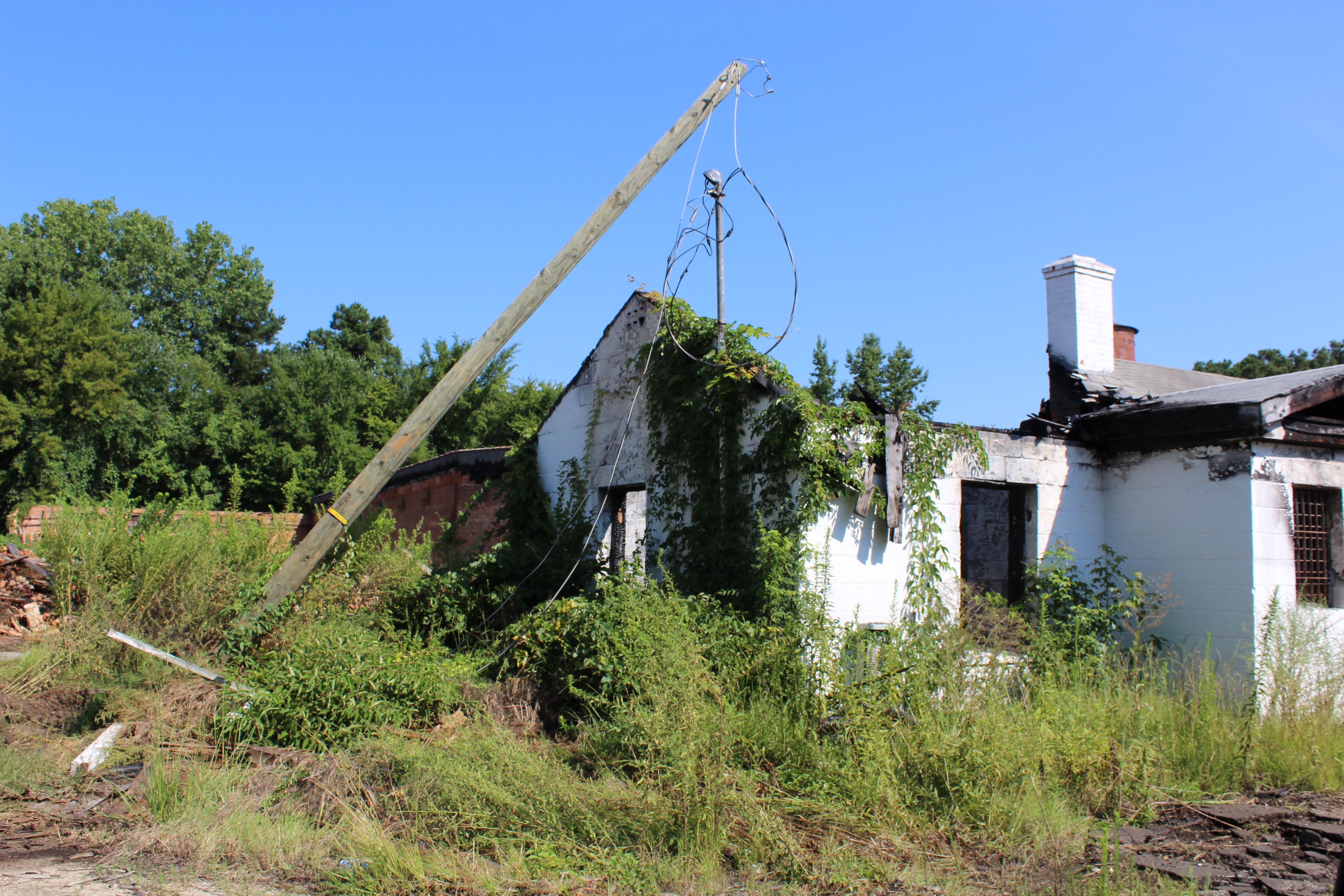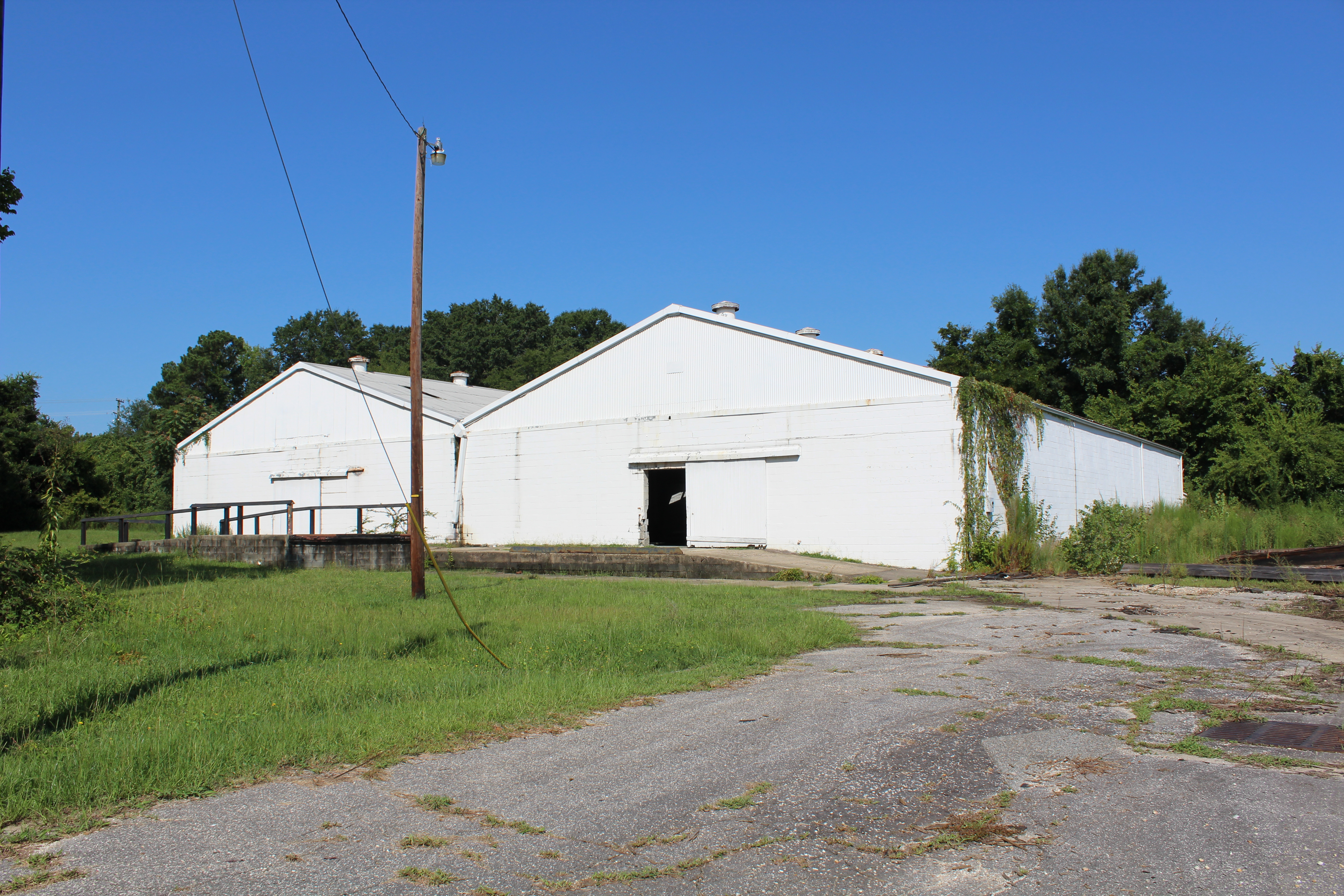 This property is just over five-acres and currently has several large vacant buildings and one small vacant building on it. Some of the existing buildings are dilapidated. One building has suffered major fire damage and another building has a missing roof and some walls. This property will require a major mitigation. A business on this property should greatly improve the aesthetics and safety issues that are currently present.