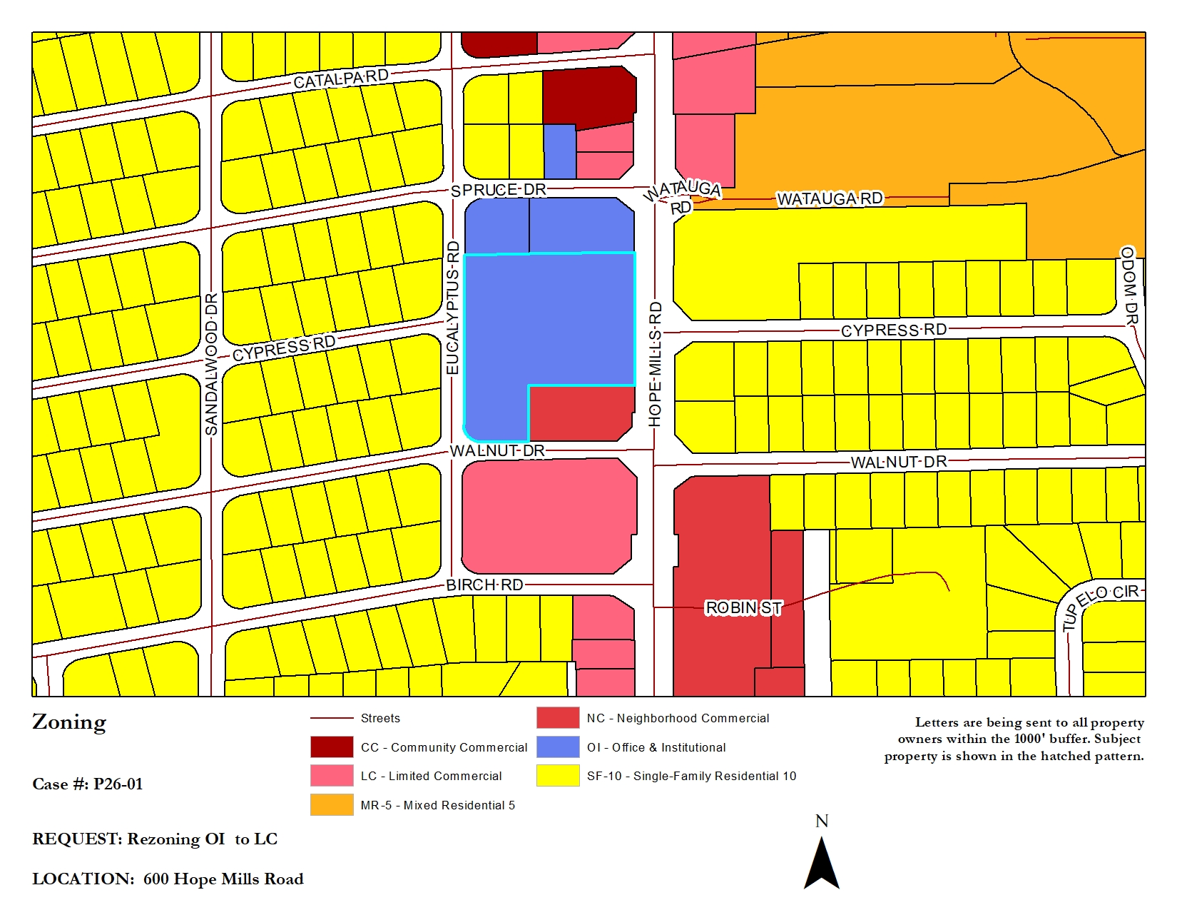 Approve P26-01: A request to rezone property at 600 Hope Mills Rd (0416184349000 ), consisting of 3.72 acres and owned by LAFAYETTE LAND CORPORATION, from Office and Institutional (OI) to Limited Commercial (LC)...Title